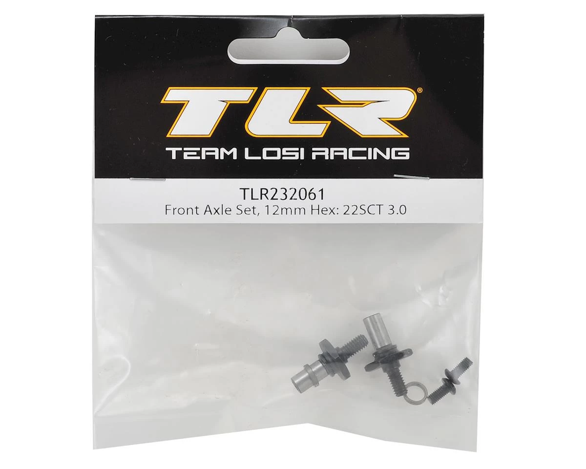 This is a replacement Team Losi Racing 12mm Hex 22SCT 3.0 Front Axle Set.