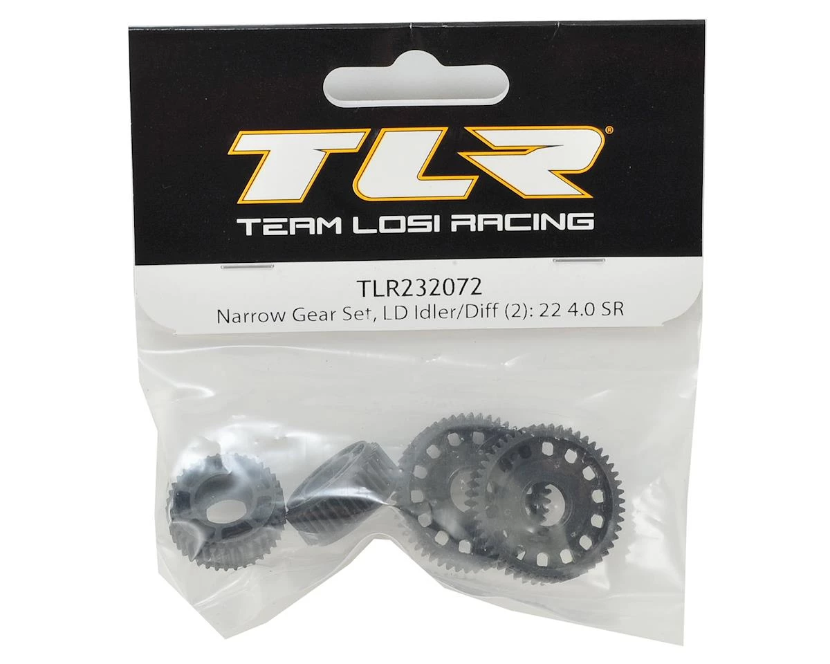 This is the optional Team Losi Racing 22 4.0 SPEC-Racer Laydown Narrow Gear Set. These gears are cut narrow for reduced resistance and drag. A must have for the stock racer.