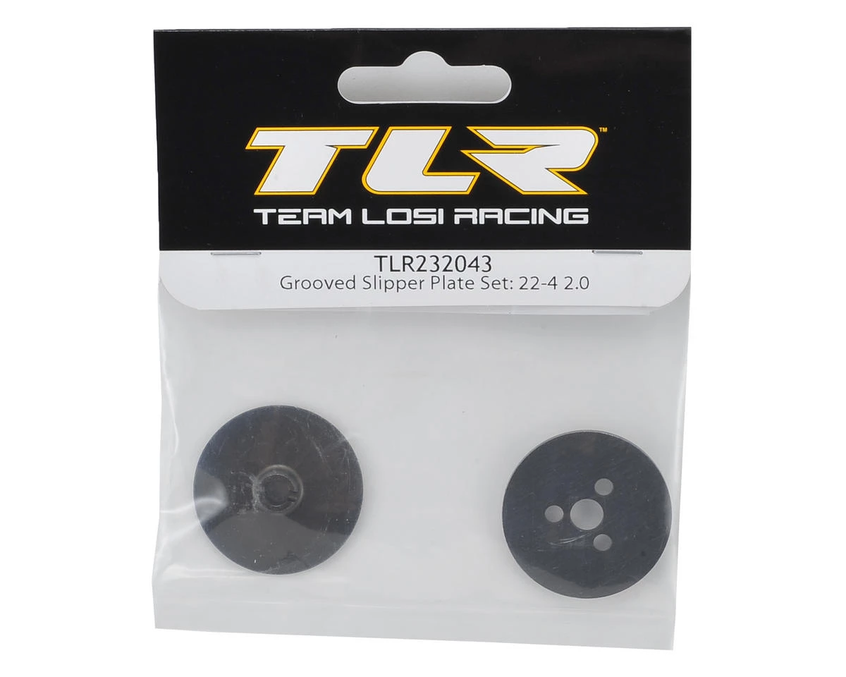 Team Losi Racing 22-4 2.0 Grooved Slipper Plate Set. Package includes replacement aluminum slipper plates.