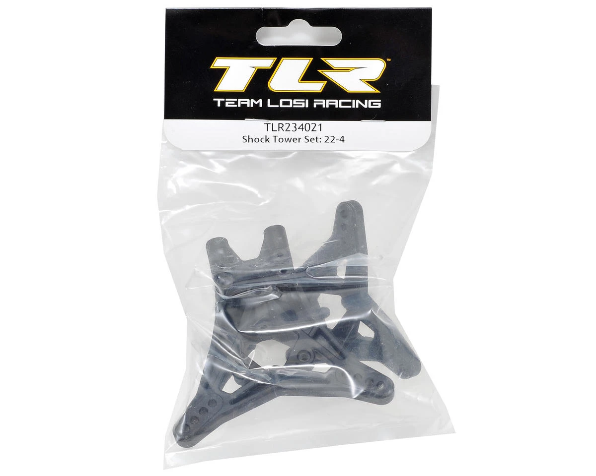 This is a replacement Team Losi Racing 22-4 Shock Tower Set. Package includes one front shock tower and one rear shock tower.