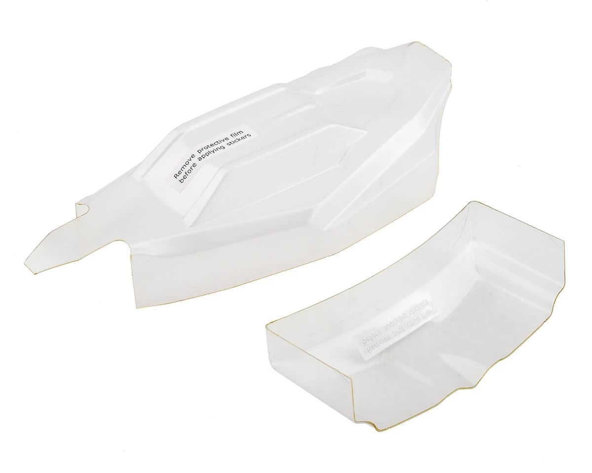 This is a Team Losi Racing Ultra Lightweight Clear 1/10 Buggy Body with Wing, intended for use with the Team Losi Racing 22 5.0 2WD Electric Buggies as an optional ultra lightweight body.