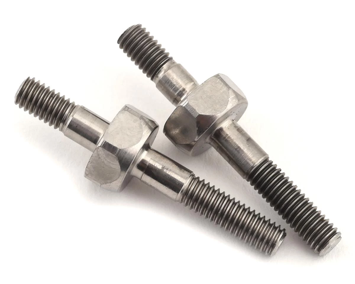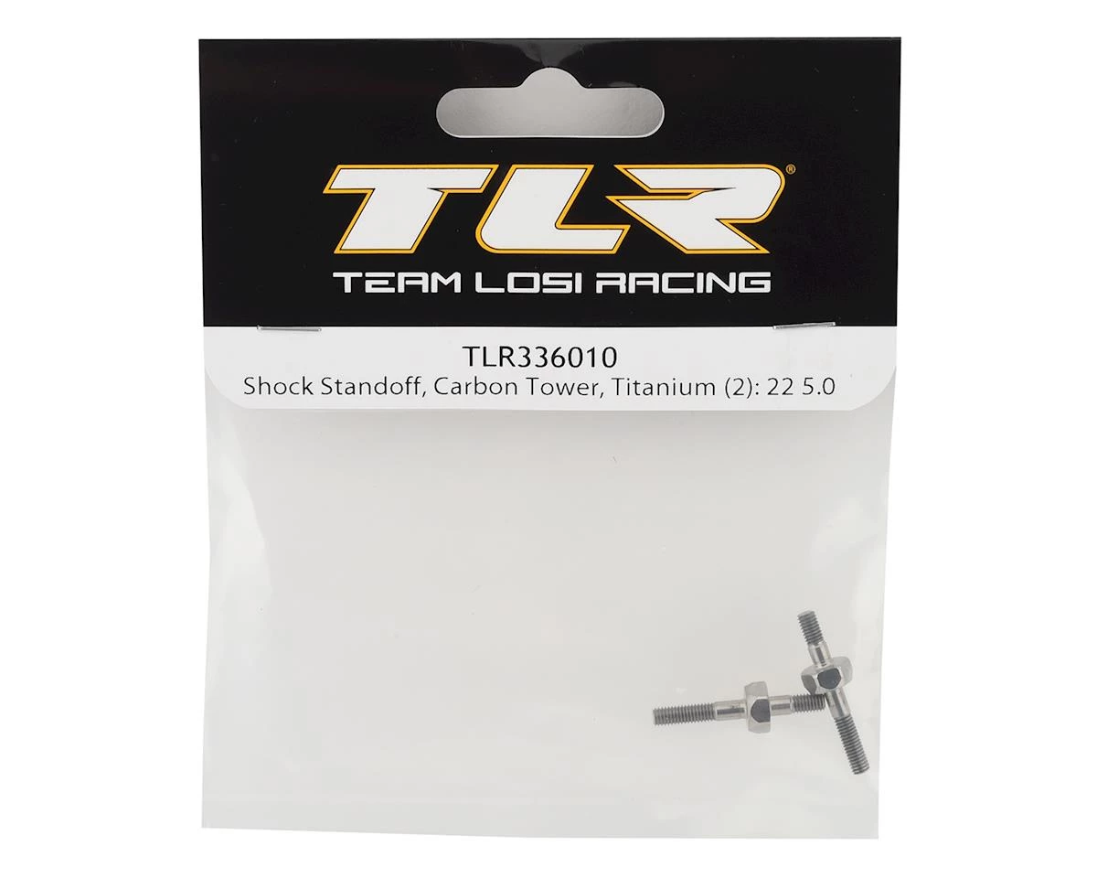 This is a set of two Team Losi Racing Carbon Tower Titanium Standoffs, intended for use with Team Losi Racing 22 5.0 1/10 2WD Electric Buggy Kits. These optional standoffs are machined out of titanium for lighter weight and superior strength compared to the stock parts.