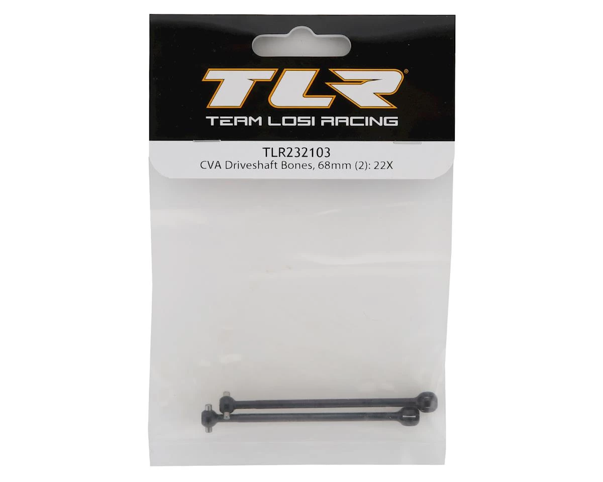 This is an optional set of two Team Losi Racing 22X-4 68mm CVA Driveshaft Bones, intended for use with the TLR 22X-4 Race Kit. These driveshaft bones are used in the front/center position.