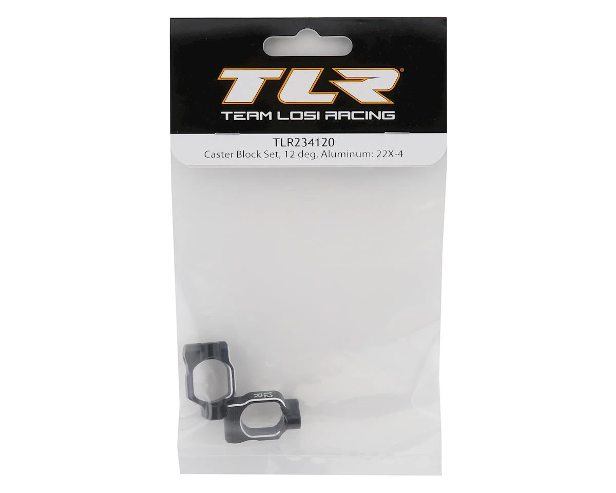 This is an optional Team Losi Racing 22X-4 12 Degree Aluminum Caster Block Set, intended for use with the TLR 22X-4 Race Kit.