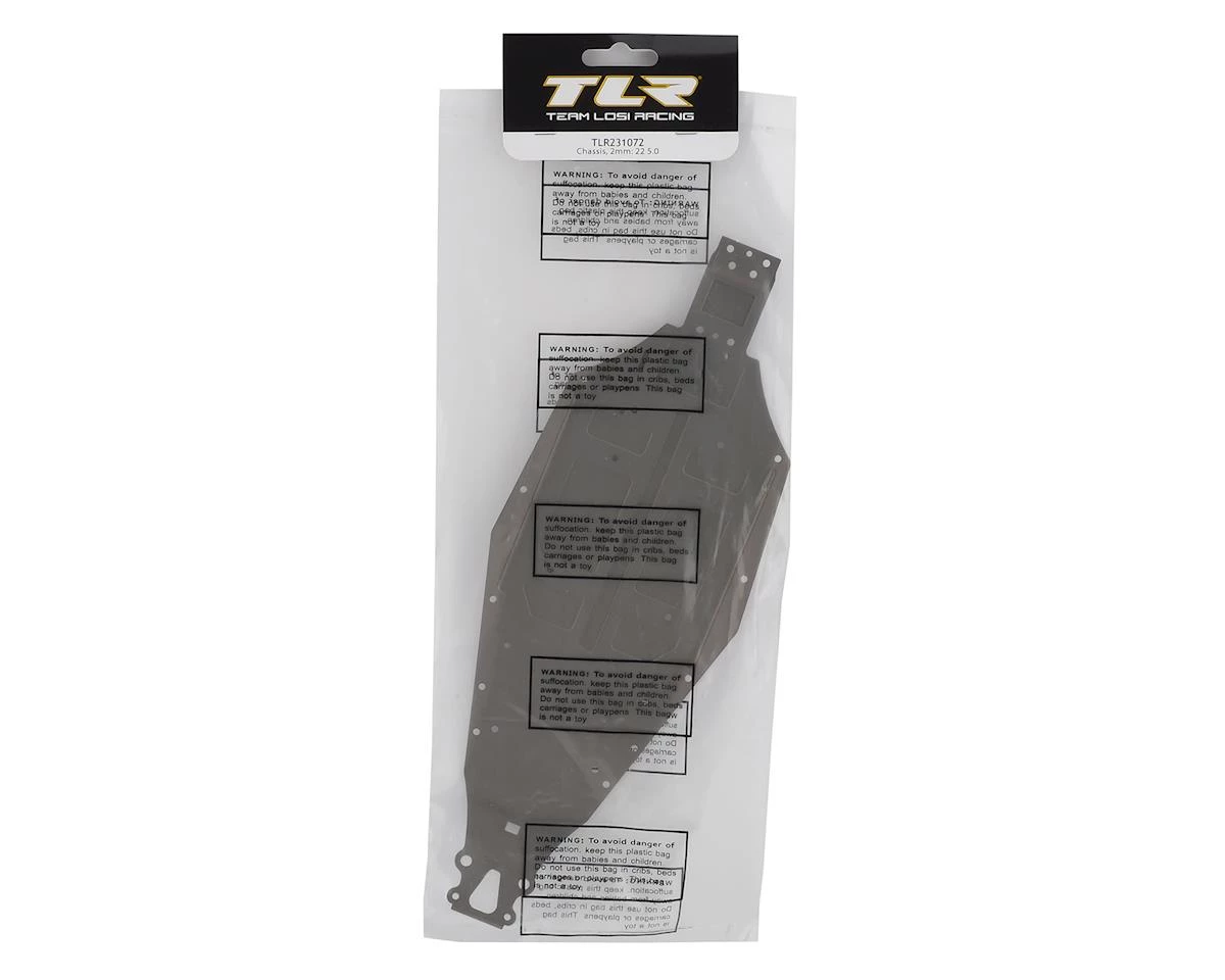 This is a replacement Team Losi Racing 2mm Thick Aluminum Chassis for the 22 5.0 2WD buggy series.