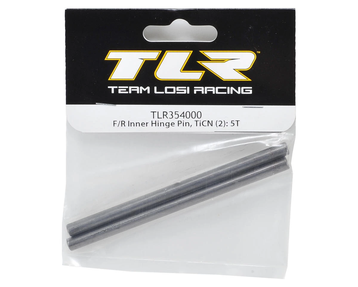 This is a pack of two optional Team Losi Racing 5IVE-T TiCN Inner Hinge Pins. These hinge pins are for use in the front or rear inner hinge pin locations. The Ti-Carbonitride coating has proven to be a very smooth and even more reliable than Ti-Nitride, and will provide smooth, friction-free operation.