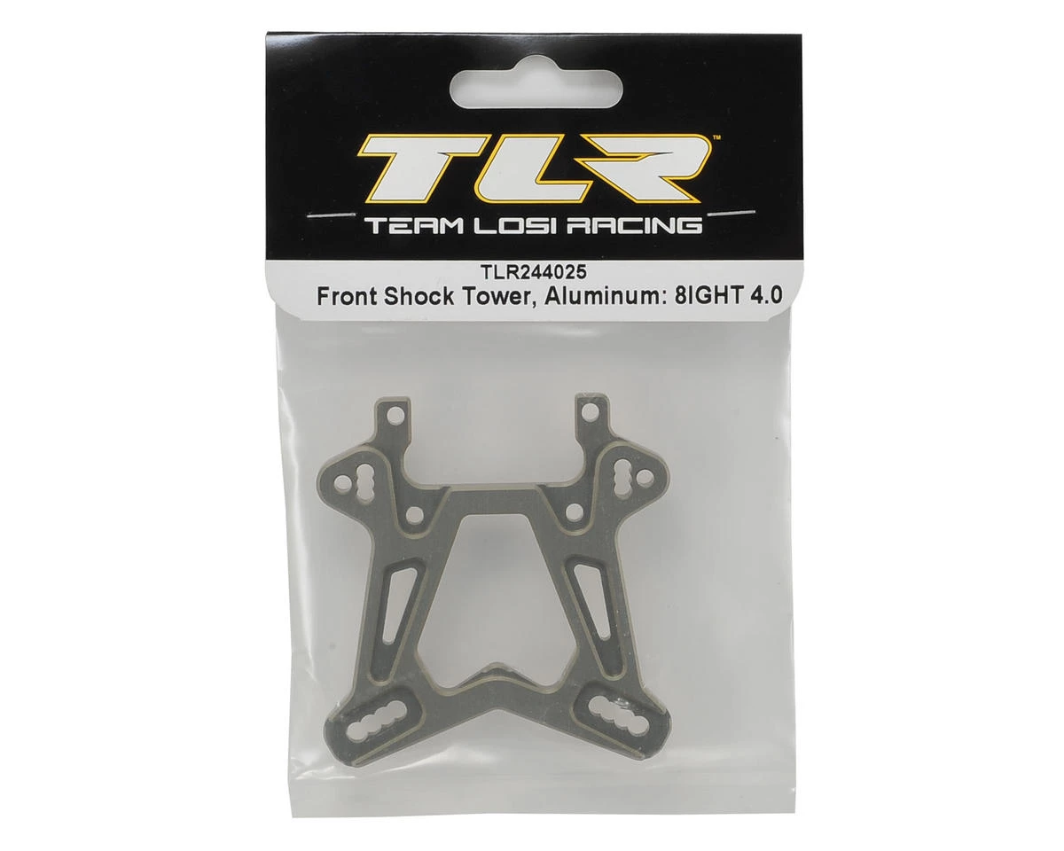 Team Losi Racing 8IGHT 4.0 Aluminum Front Shock Tower. This is the standard replacement shock tower. This shock tower features updated link and shock mounting holes.