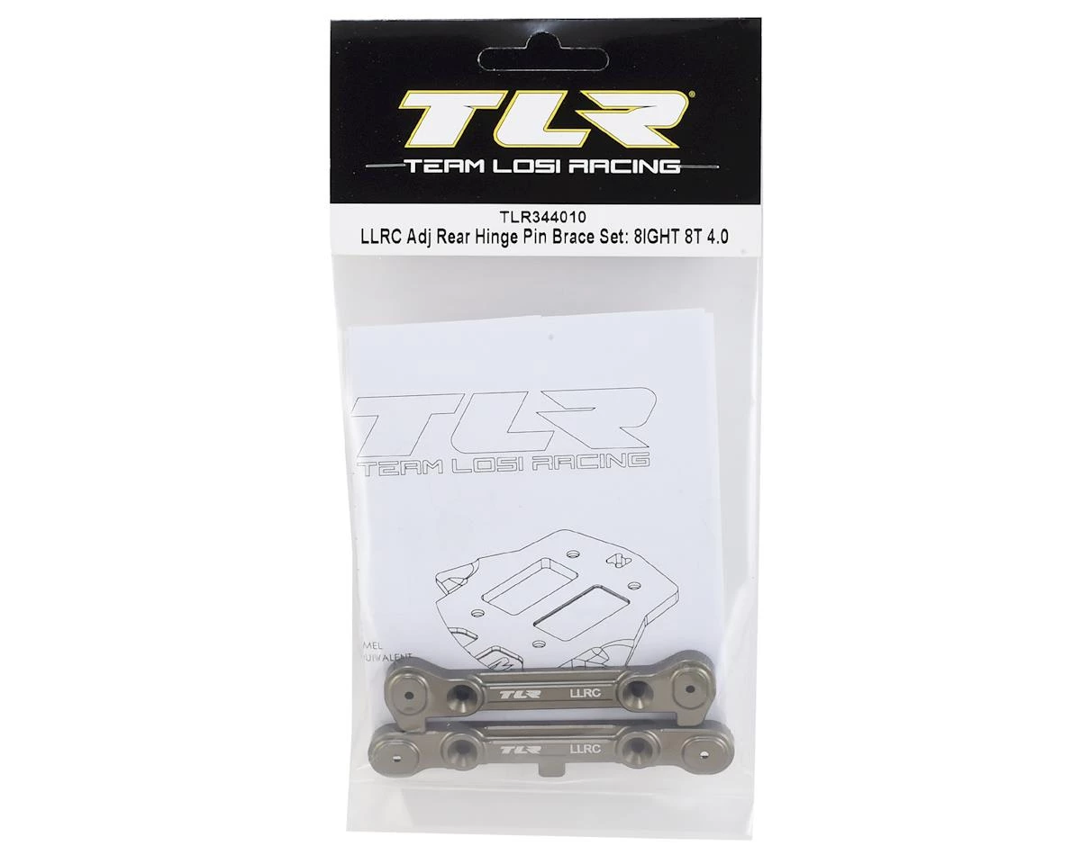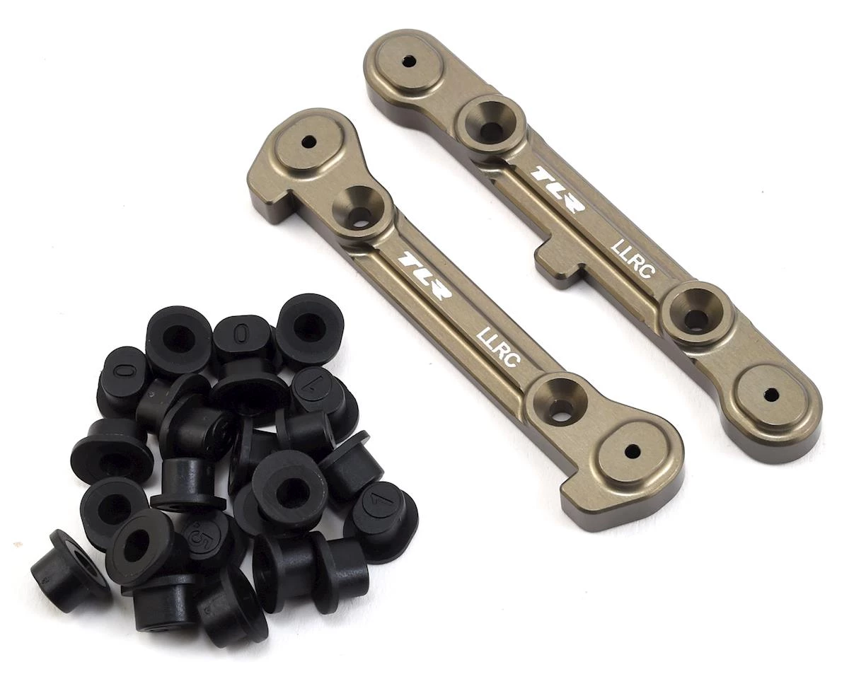 TLR 8IGHT/8IGHT T 4.0 LLRC Adjustable Rear Hinge Pin Brace Set is a purpose-built set of C and D blocks for the rear of the 8IGHT line that provides you with the corrected parts for getting that lower rear roll center many factory drivers are using. Lowering the rear roll center can really help through the bumps and landing jumps. Having the purpose-built C block helps maintain the proper anti-squat adjustments with the 0 insert now being back to 3 degrees of anti-squat.