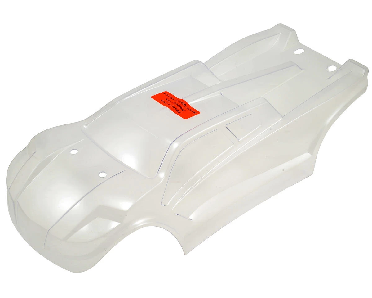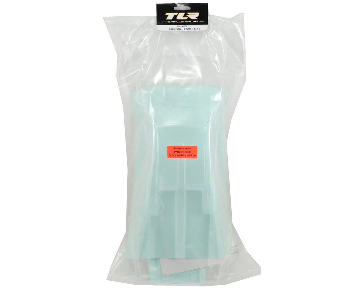 Team Losi 8IGHT-T E 3.0 Clear Body. This body is pre-trimmed with overspray film applied, and includes a sticker sheet and window masks.