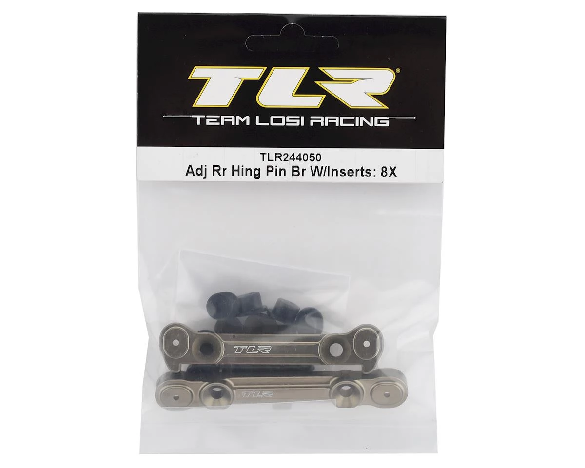 This is a replacement Team Losi Racing 8IGHT-X Adjustable Rear Hinge Pin Brace Set, with included bushing inserts.