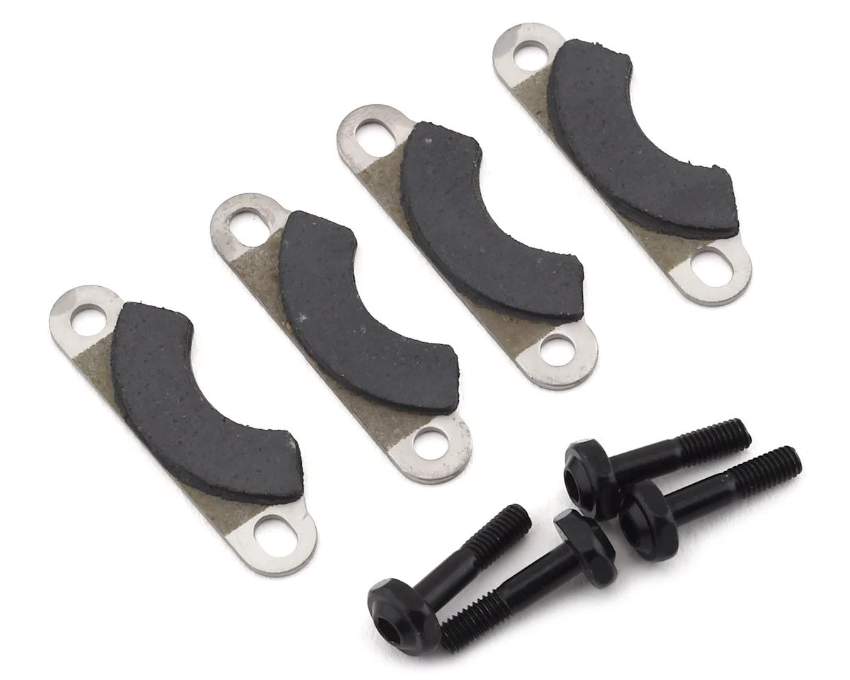 This is a replacement Team Losi Racing 8IGHT-X Brake Pad and Screw Set, including four pads and four screws.