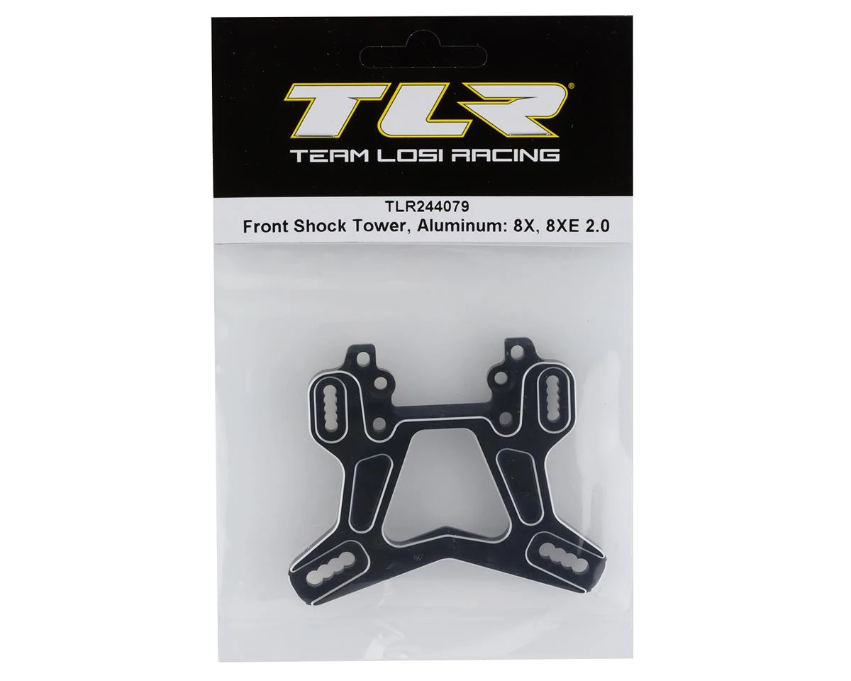Team Losi Racing 8IGHT-X/E 2.0 Aluminum Front Shock Tower. This replacement shock tower is intended for the front of the 8IGHT-X/E 2.0. Package includes one shock tower.