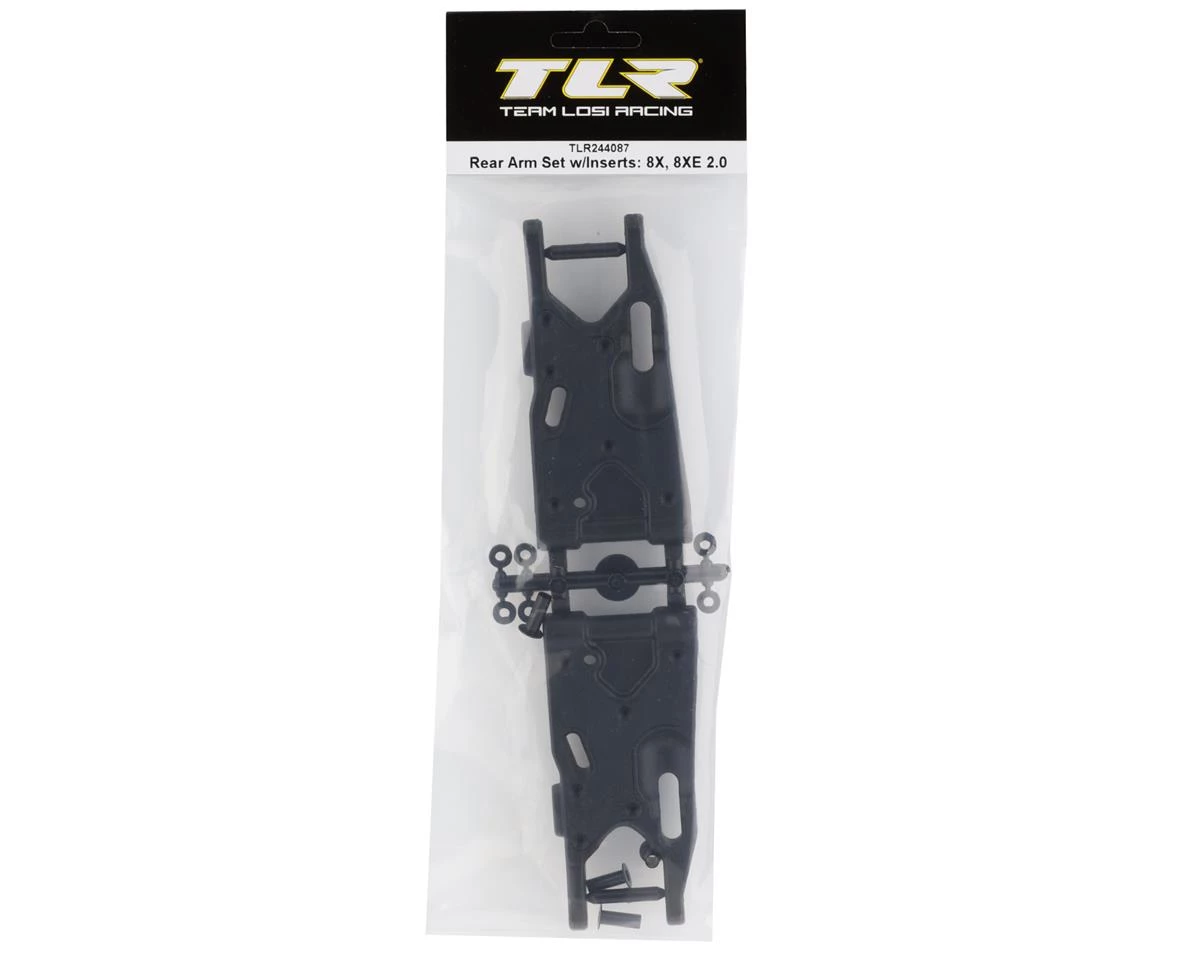 Team Losi Racing 8IGHT-X/E 2.0 Rear Arm Set with Inserts. This replacement arm set is intended for the 8IGHT-X/E 2.0. Package includes two rear arms, four inserts and six shims.