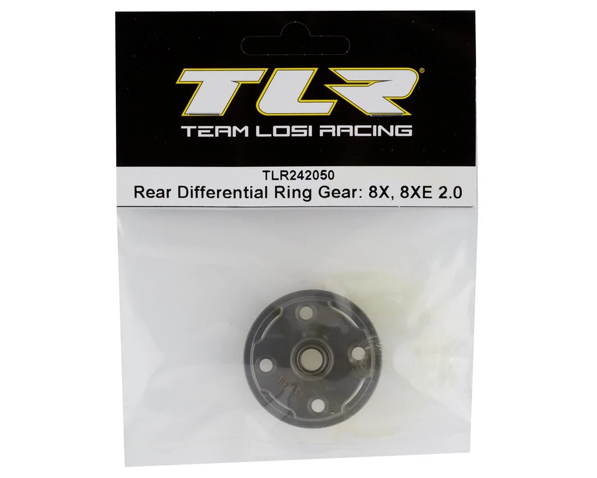 Team Losi Racing 8IGHT-X/E 2.0 Rear Differential Ring Gear. This replacement ring gear is intended for the 8IGHT-X/E 2.0. Package includes one ring gear.