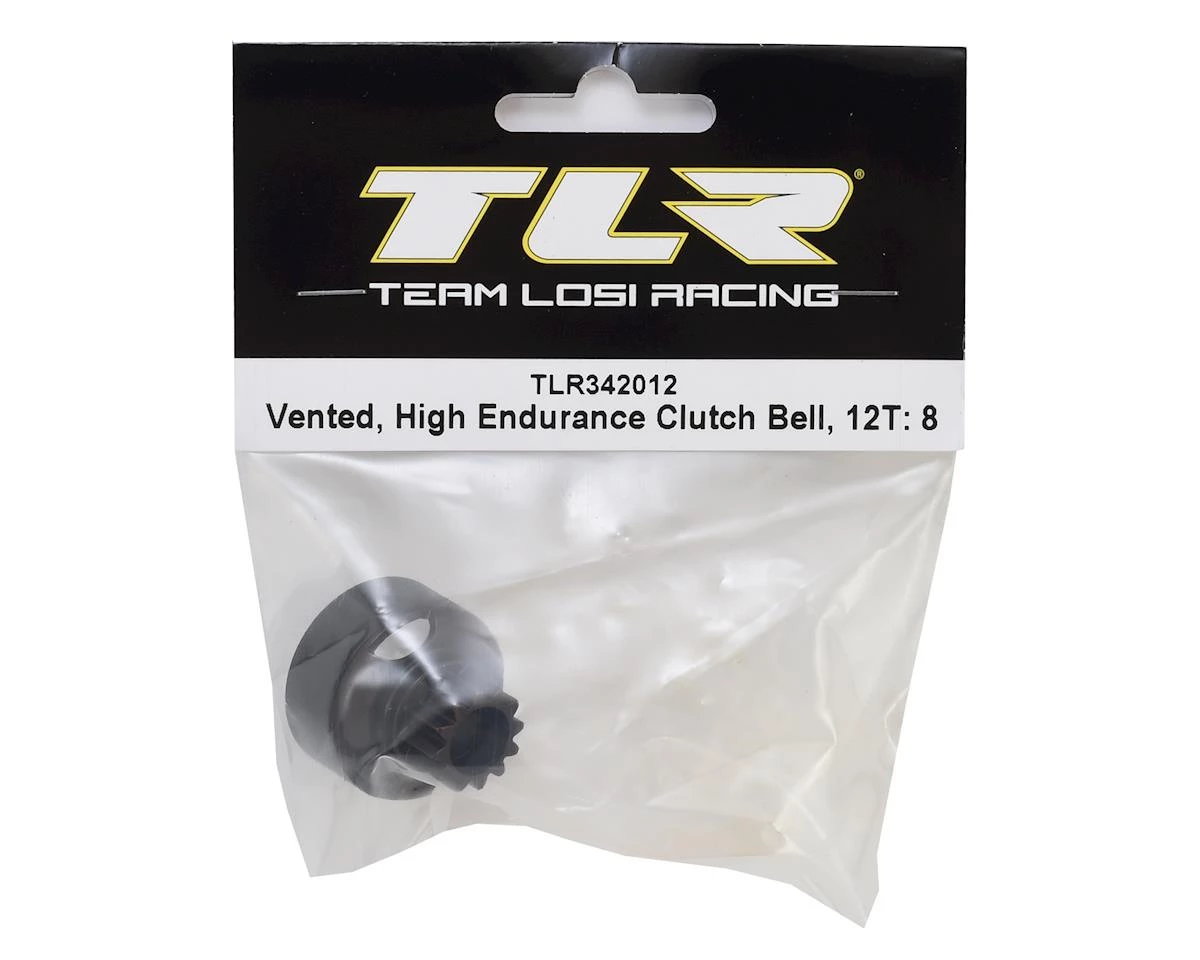 This Team Losi Racing 12 Tooth High Endurance Clutch Bell is for use with the 8IGHT-X 1/8 Buggy and features a vented design for increased cooling.