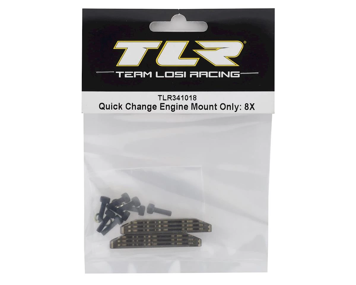 Team Losi Racing 8IGHT-X Quick Change Engine Mount Top Blocks are an optional accessory for Losi 8IGHT-X models equipped with the Quick Change Engine Mount set (TLR341019). The top blocks can be installed on a spare engine, allowing you to have a spare engine clutched up and ready to run, and swap your engine out quickly without needing to adjust the gear mesh.