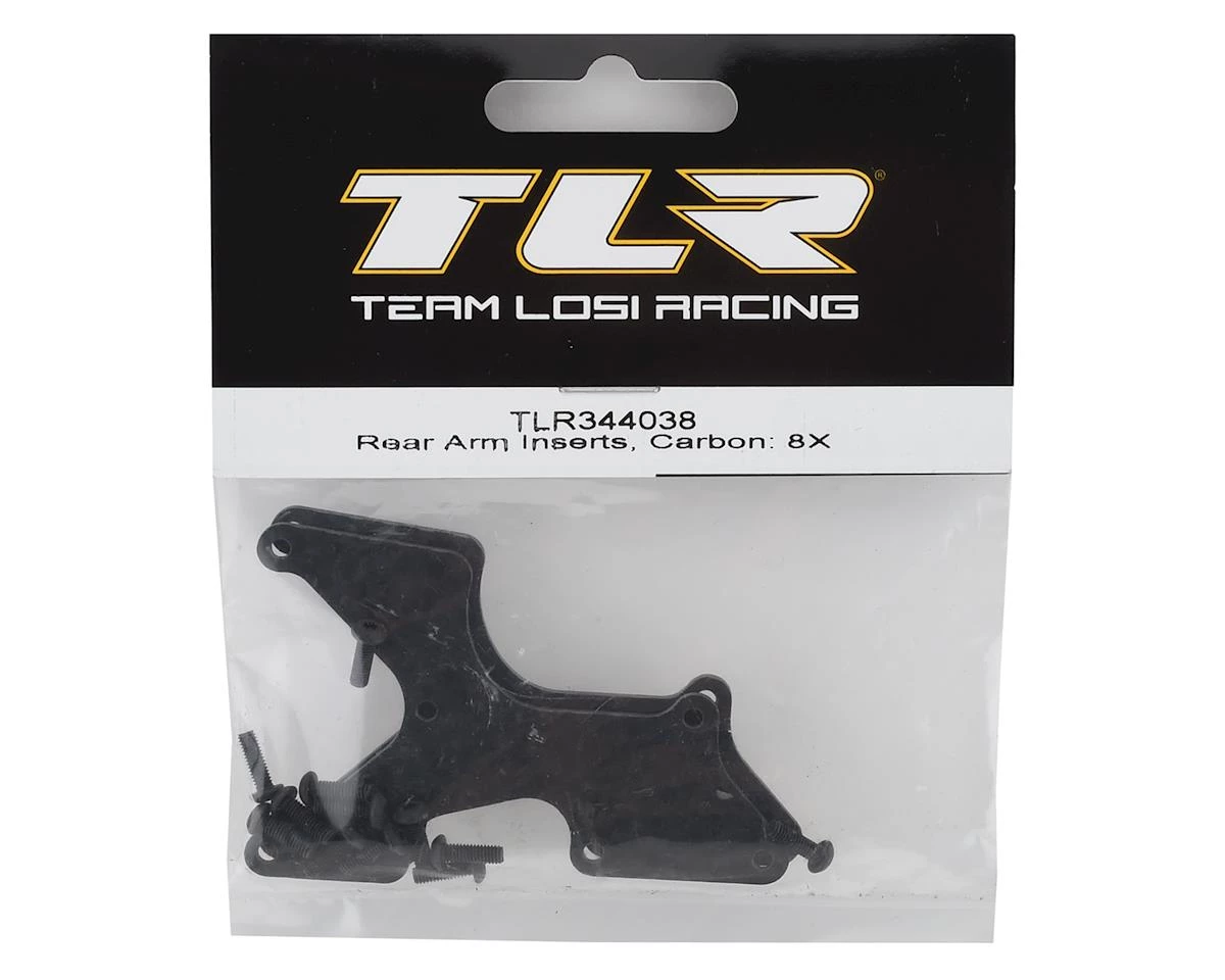 This is a replacement pack of Team Losi Racing 8IGHT-X Carbon Rear Arm Inserts, intended for use with the TLR 8IGHT-X, 8IGHT-XE and 8IGHT-X Elite 1/8 buggy kits.