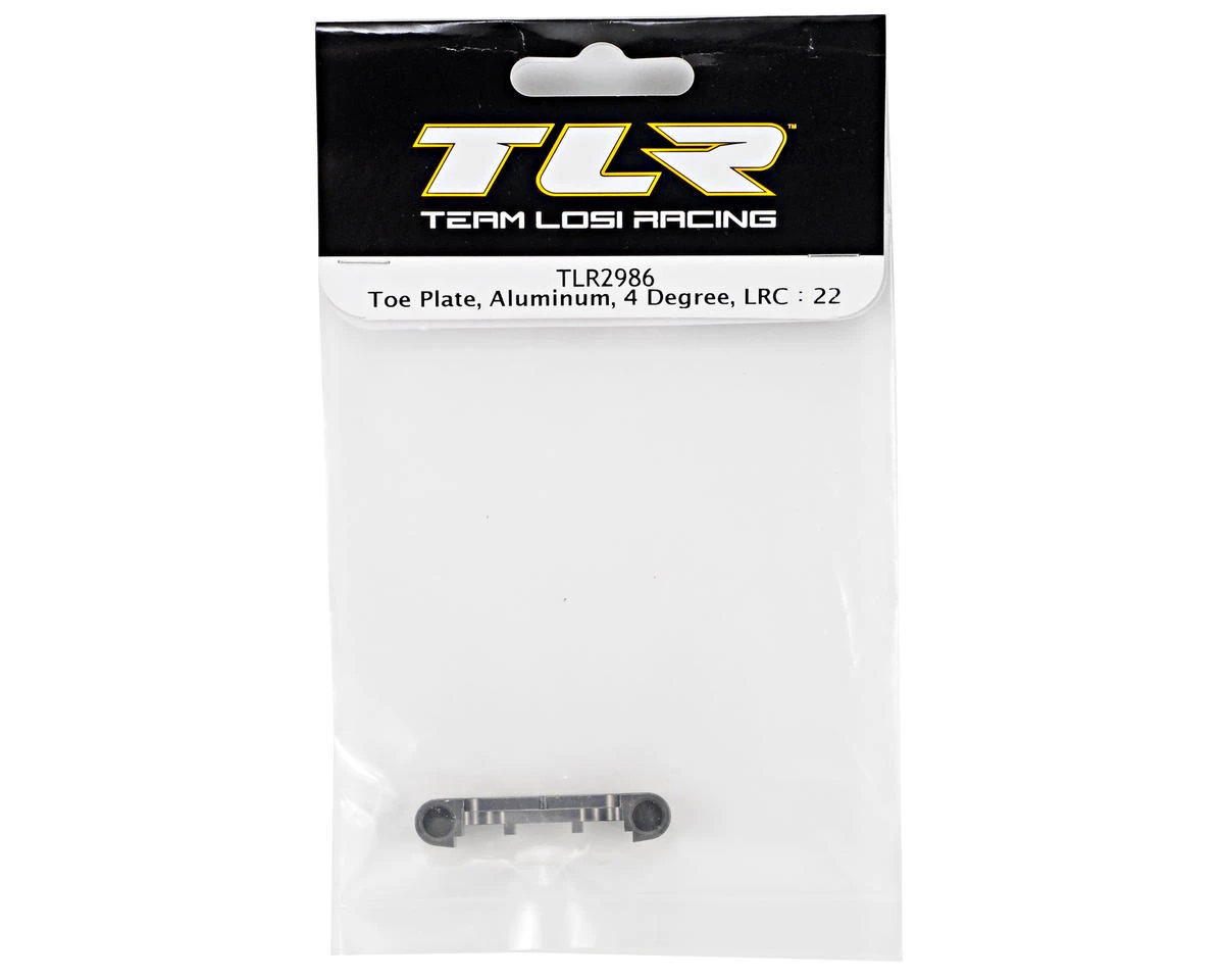 This is an optional Team Losi Racing Aluminum 4° Low Roll Center Toe Plate, intended for use with the Team Losi Racing 22 1/10 buggy.