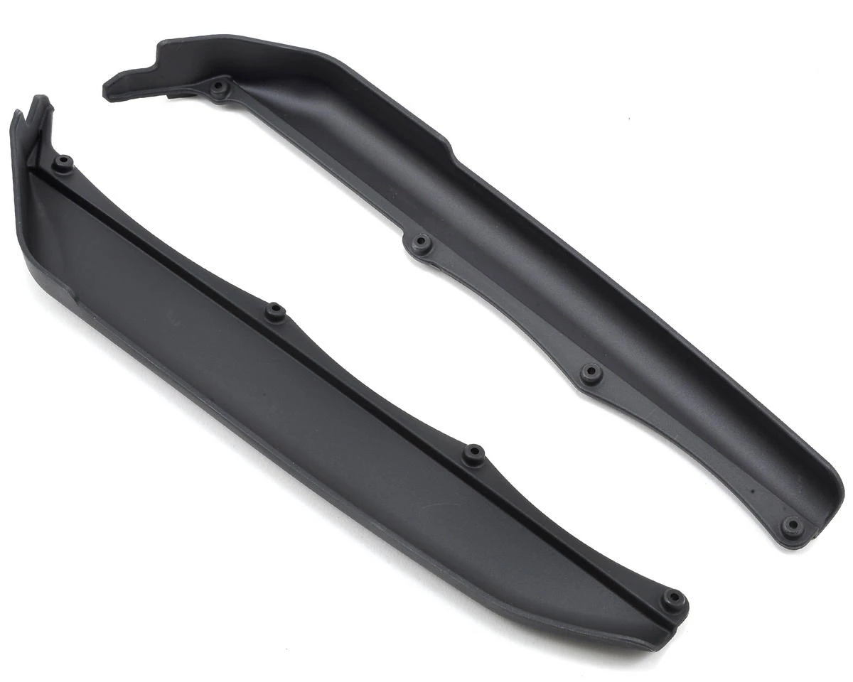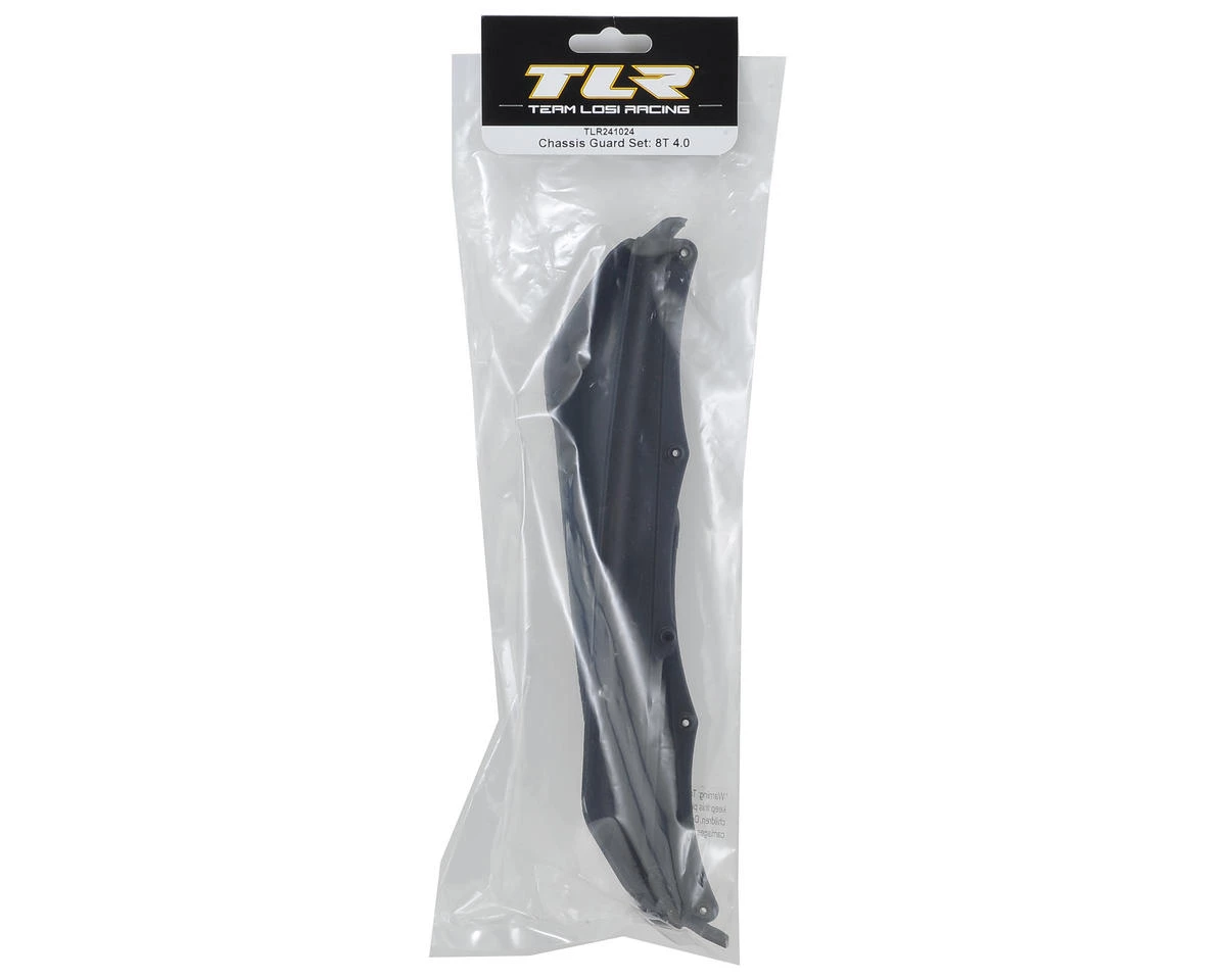 A factory replacement TLR Chassis Guard Set, intended for use with the 8IGHT-T 4.0. The package includes one right, and one left Chassis Guard.
