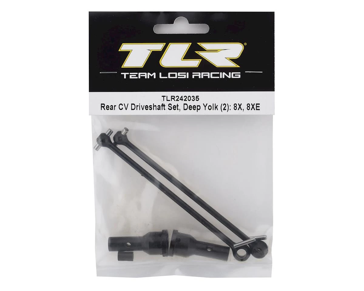 This is a replacement Team Losi Racing Deep Yolk Rear CV Driveshaft Set, intended for use with the 8IGHT-X Elite 1/8 4WD Competition Nitro Buggy Kit.