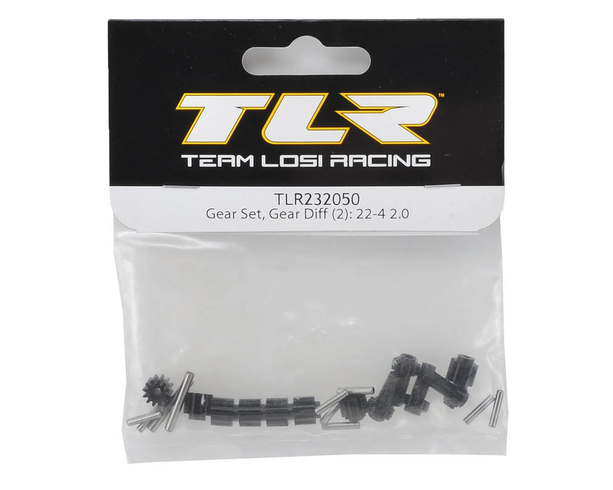 This is the Team Losi Racing Gear Differential Gear Set, for use with the 22-4 2.0 4WD Buggy, as well as the 22 series of 2WD vehicles. Package includes replacement gears and cross pins for two differentials.