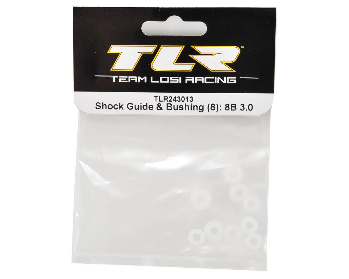 This is a replacement Team Losi Racing Shock Guide & Bushing Set. Package includes four shock shaft guides and four shock shaft bushings that are are used with the Losi 16mm shocks.
