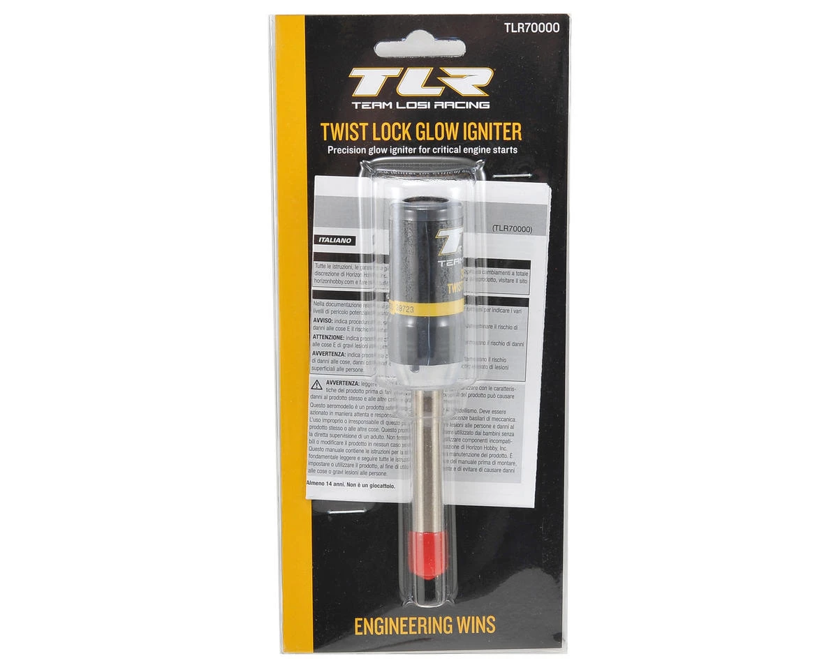 This is the Team Losi Racing Twist Lock Glow Igniter. This light and convenient igniter can be easily operated with one hand and is perfect to have on hand in the pits. This was tested by Adam Drake and Dakotah Phend and is their igniter of choice.